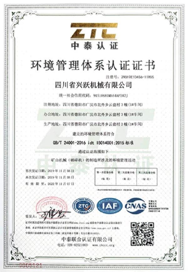 興躍機(jī)械——中泰認(rèn)證環(huán)境管理體系認(rèn)證證書